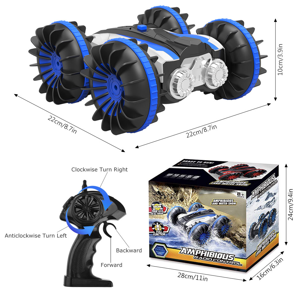 2.4G RC Car Boat Land Water RC Stunt Car Double Sided Remote Control Off-road Vehicle Amphibious RC Racing Car with 360° Rotation, Blue