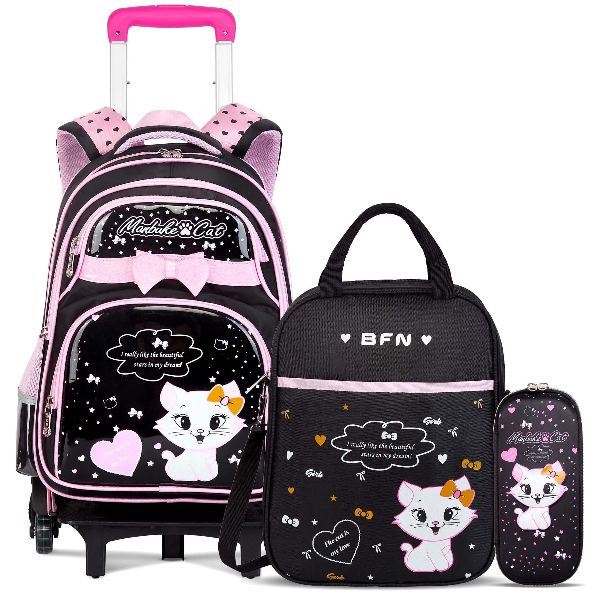 Vbiger Rolling Backpack 6-Wheel Kids Backpacks Black Waterproof School Bag with Lunch Bag £¦ Pen Case