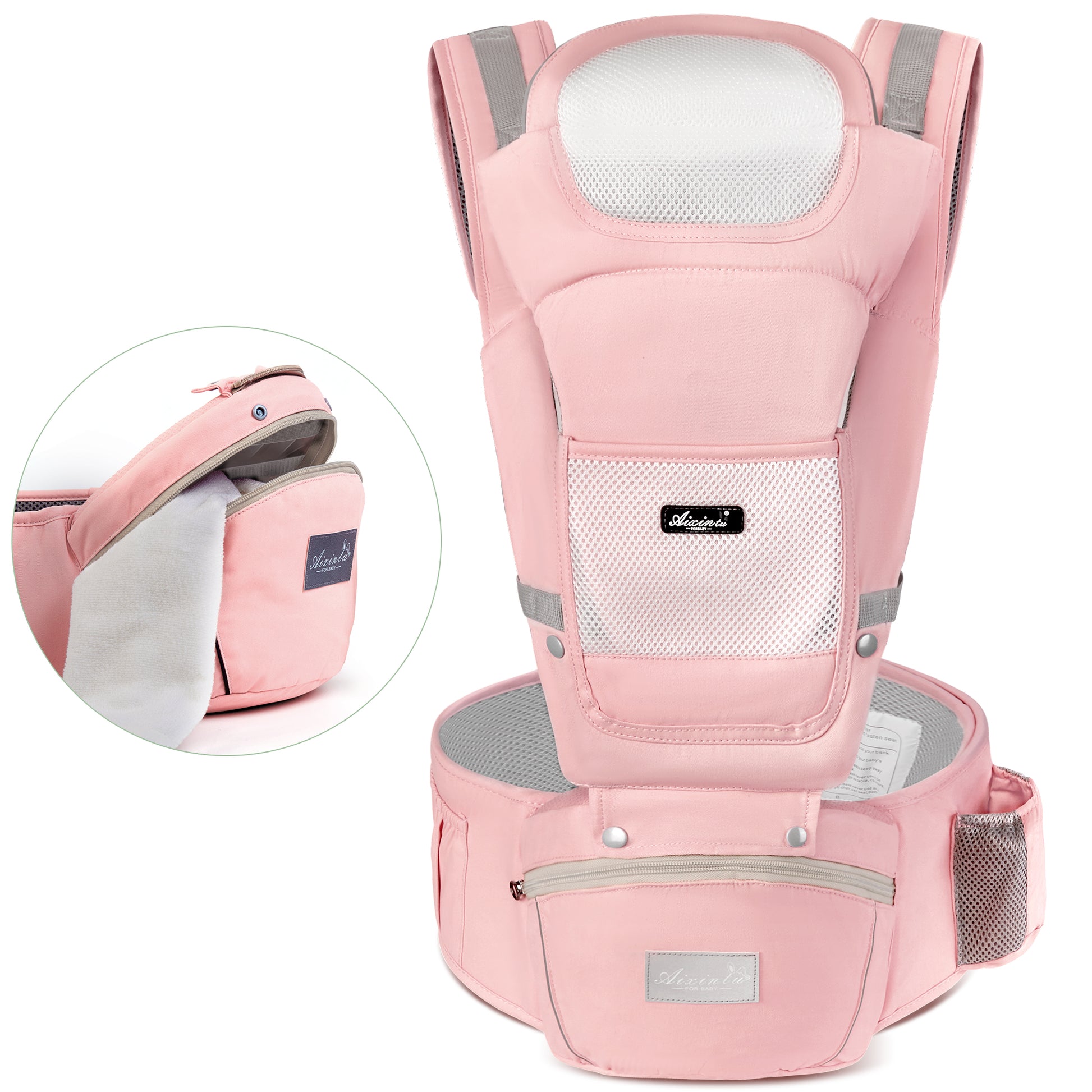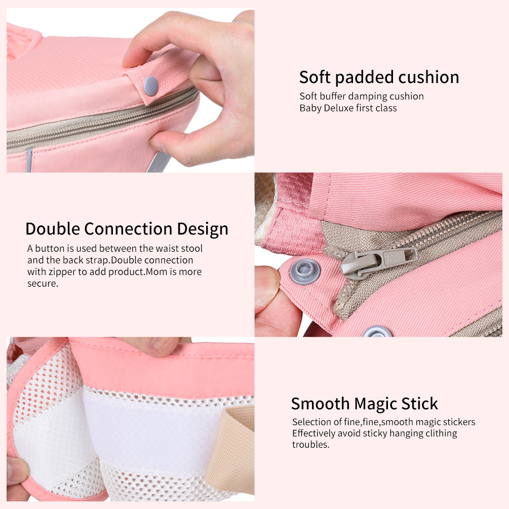 Baby Carrier Waist Stool Detachable Newborn Walkers Cotton Mesh Backpack for All Seasons, Pink