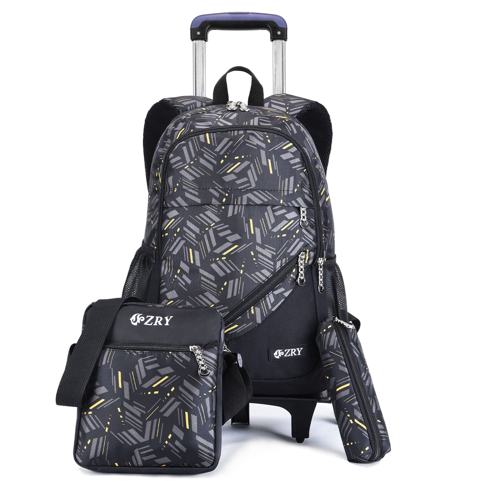 Vibger School Backpack 3PCS Kids Bookbag Rolling Backpack Set with Crossbody Bag £¦ Pencil Bag Black