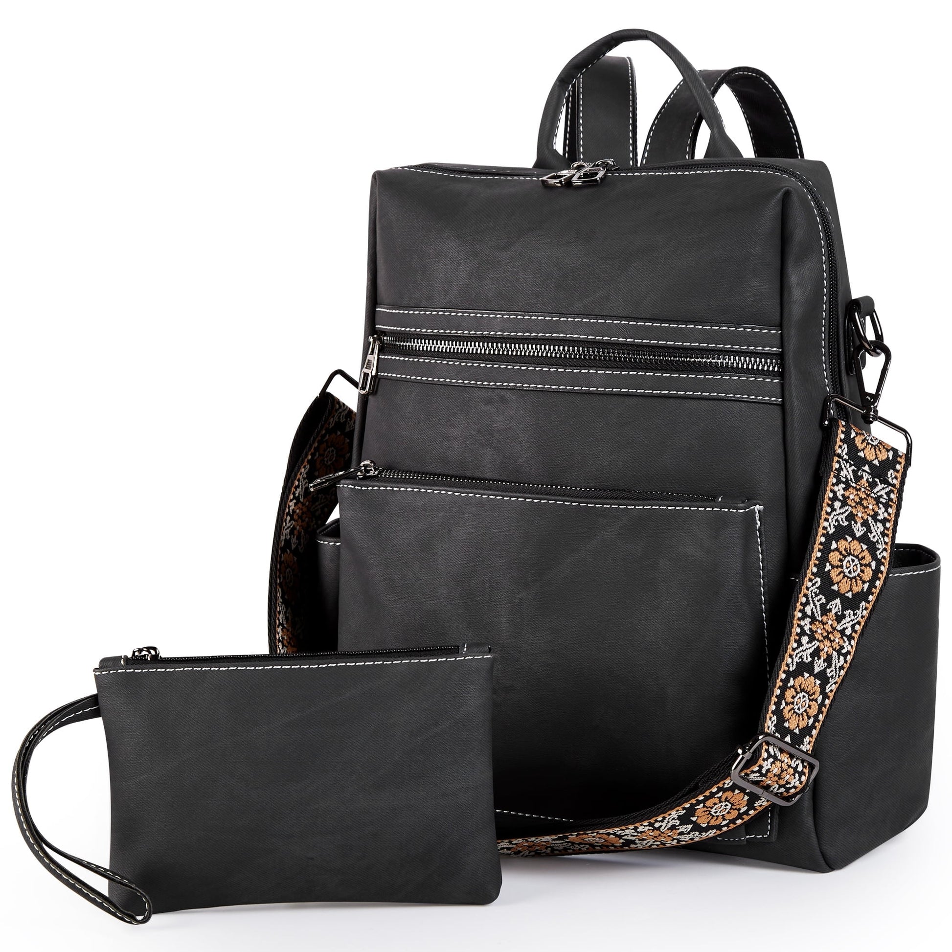 Vbiger Backpack Purse for Women Leather Waterproof Large Travel Backpack Fashion Shoulder Handbag with Wallet - Black