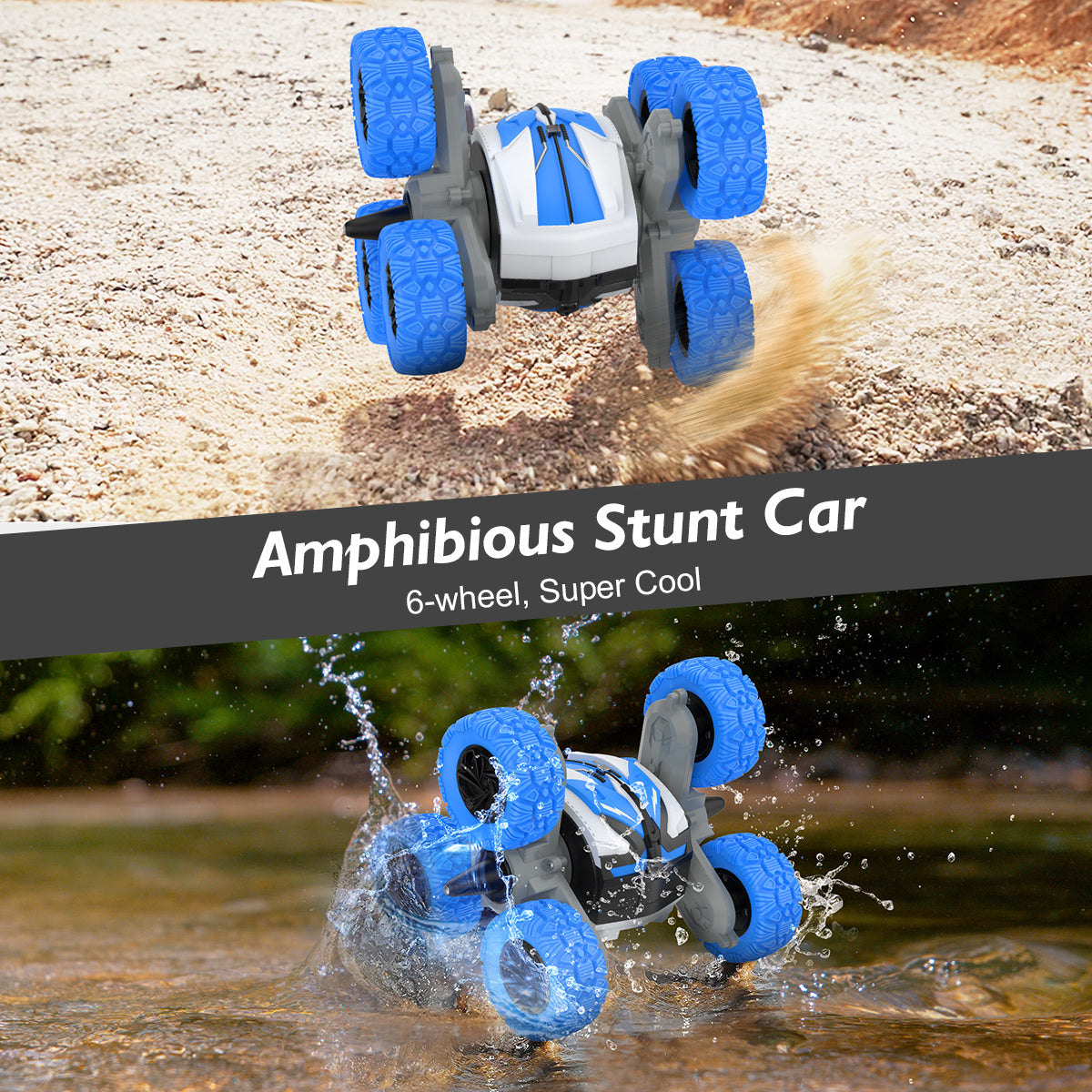 RC Stunt Car 6 WD RC Car Toys for 5-12 Years Old Boys 2.4GHz Amphibious 360 Rotating RC Stunt Car Boat Remote Control Car Toy for Boys Girls, Blue