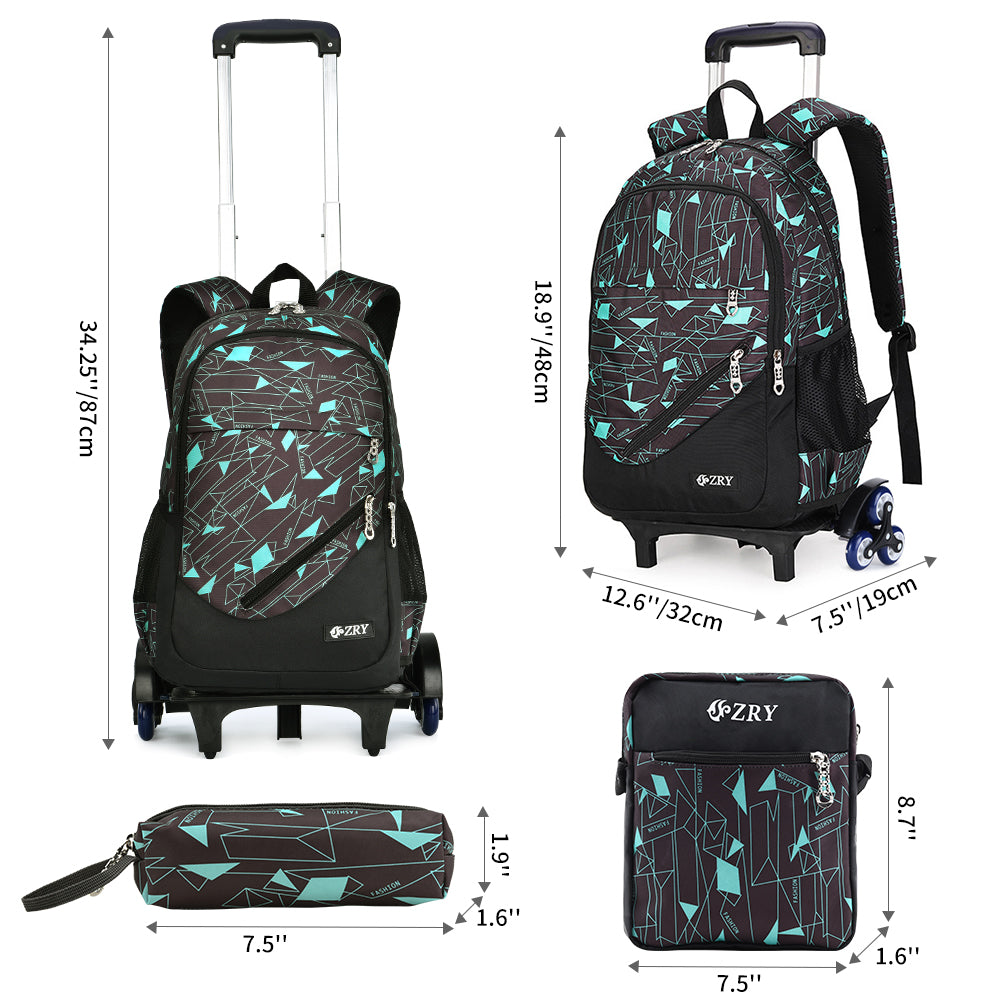 <p>➤ 6-wheel & 3-stage Design: The Rolling Backpack for Kids is equipped with 6 wheels which are wear-resistant, fast-sliding and smooth without getting stuck, perfect for climbing stairs, helping to ease kids' burden and promote their healthy growth. The aluminum alloy pull rod is adjustable and detachable, suitable for 6-11 years old students. Recommended for girls over 1m tall. Ideal for school, everyday use or travel for children<br />➤ Large Capacity: With the size of 18.9*12.6*7.5"/48*32*19cm, the Wheel Backpack for School consists of a main pocket, in which there is a laptop interlayer for holding a 13inch laptop or all kinds of iPad, and 3 front pockets which are designed for storing A4 books, textbooks and stationery, as well as two side mesh pockets for water bottle or umbrella<br />➤ Excellent Material & Workmanship: Our Kids Roller Backpack is crafted with high-density and splash-proof fabric, featuring wear resistance and tear resistance. Besides, the handle and shoulder straps adopt sturdy material, and the stressed parts are reinforced with bartack, thus ensuring better durability<br />➤ Practical 3-in-1 Trolley Backpack Set: Apart from the useful School Bag, there also comes with a cross-body bag and a pen bag, which are provided for student's convenience. Children can use the cross-body bag when going for daily activities. They can use the 3 bags for different occasions<br />➤ Ergonomic Design: When used as a backpack, the S-shaped sponge shoulder straps can effectively reduce children's burden, so as to protect their spine and ensure healthy growth. This Wheeled Backpack is suitable for primary school students, junior and senior high school students, perfect for school, travel, walking or other activities</p>