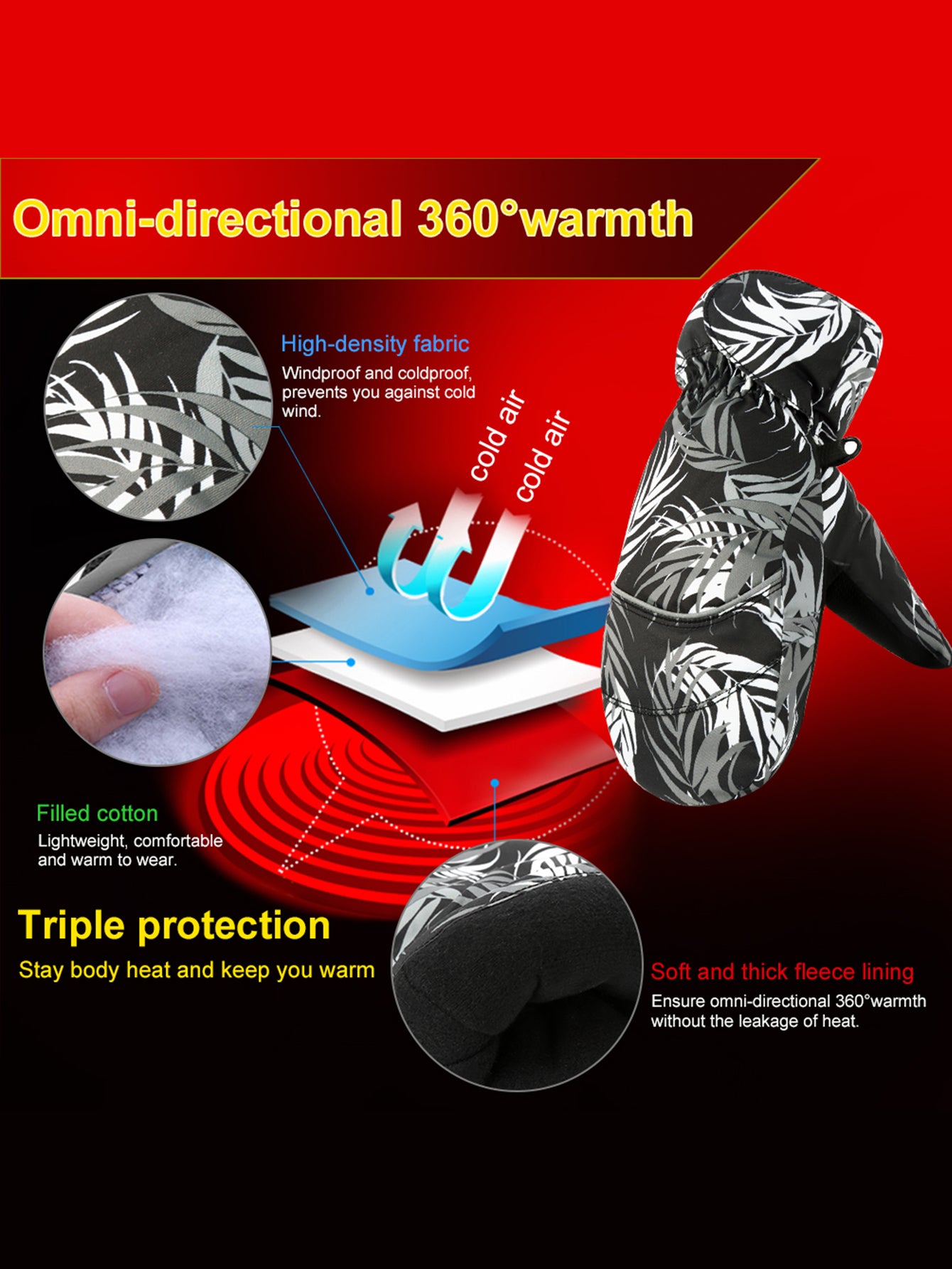 <p><strong>Information</strong><br /><br />Choose this pair of ski gloves for your kids as it is equipped with soft and thick fleece lining so that your kid can go out for skiing, skating or doing other outdoor sports in winter days.<br /><br />This pair of ski gloves has elastic wrist strap and adjustable self-adhesive strap, which not only allows your kid to adjust the tightness for tight and snug fit, but also is convenient to put on or take off. Besides, non-slip and abrasion-resistant PU leather on full palm makes your kid feel flexible and convenient to grip objects.<br /><br /><br /><br /><strong>Feature</strong><br /><br />Material: splash-proof nylon taslon & cotton interlayer & fleece lining<br /><br />Recommended age: suitable for kids between 4-5 years old<br /><br />Size chart:<br /><br />S: total length 8.3''/21cm; length of middle finger 3.3''/8.5cm; width of palm 3.7''/9.5cm; suitable for kids between 2-3 years old<br /><br />M: total length 8.7''/22cm; length of middle finger 3.5''/9cm; width of palm 3.9''/10cm; suitable for kids between 4-5 years old<br /><br />L: total length 9.1''/23cm; length of middle finger 3.7''/9.5cm; width of palm 4.1''/10.5cm; suitable for kids between 6-7 years old<br /><br />Color: as picture shown<br /><br />Package list: 1 pair of ski gloves<br /><br /><br /><br /><strong>Notice</strong><br /><br />* The actual color may vary slightly from the online image due to monitor color settings.<br />* Please allow slight measurement deviation for the data.</p>