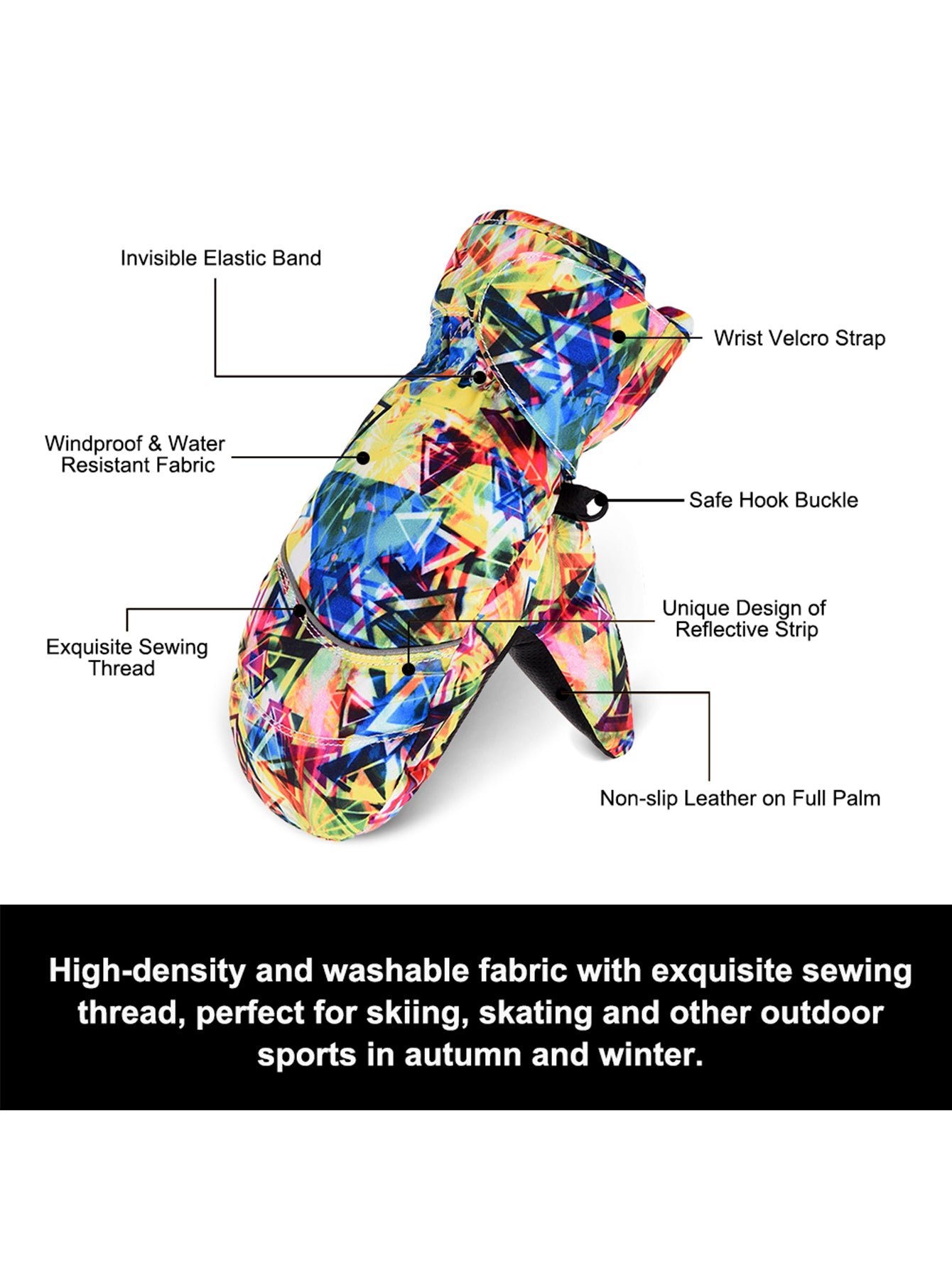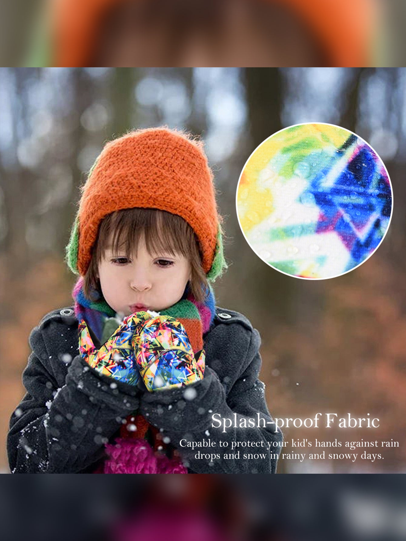 Thick Ski Gloves Warm Winter Gloves Cold Weather Gloves Anti-slip Outdoor Sports Mittens Windproof Skating Gloves with Fleece Lining, Suitable for Kids between 6-7 Years Old (Multicolor)