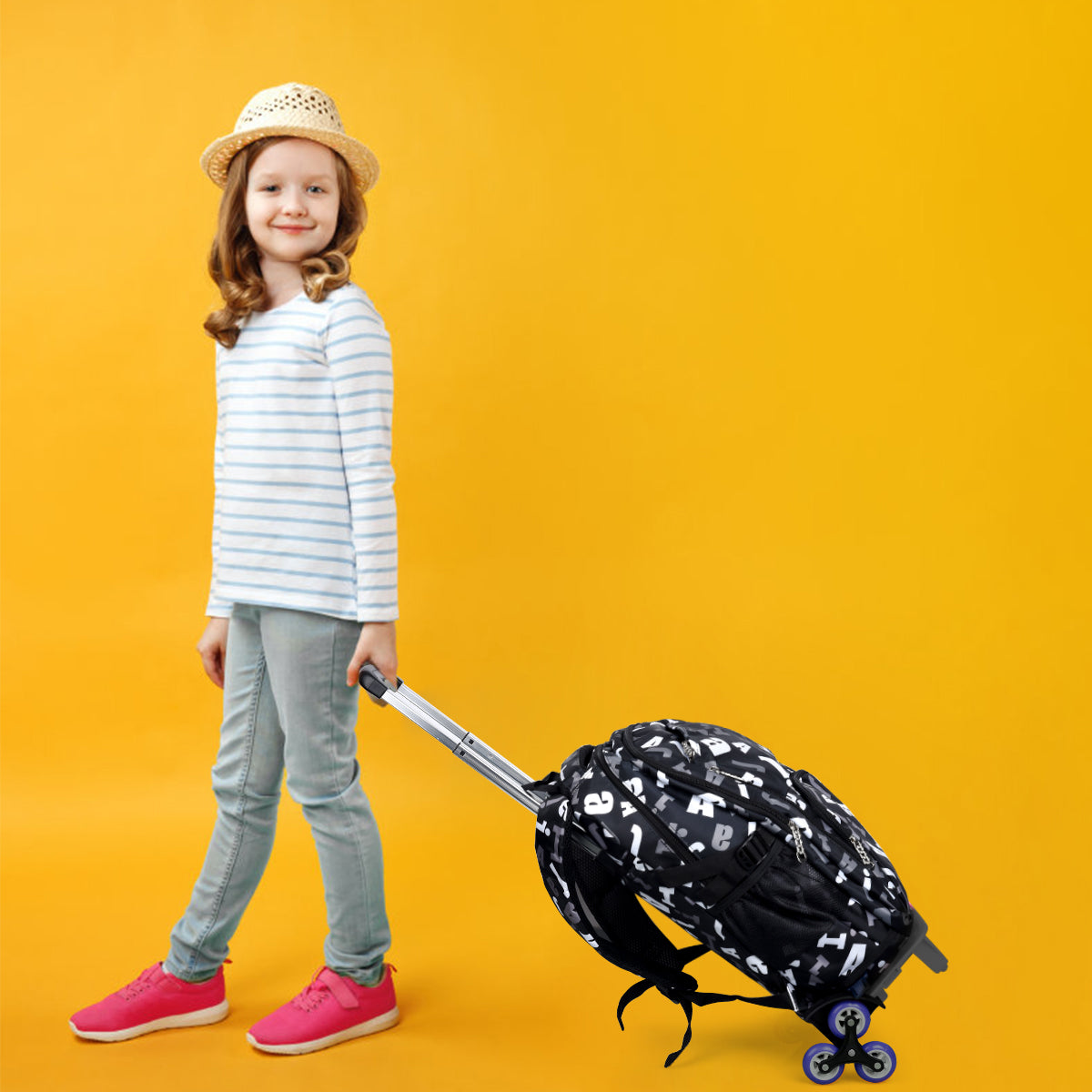 🎒 6-wheel & 3-stage Design: The Rolling Backpack for Kids is equipped with 6 wheels which are wear-resistant, fast-sliding and smooth without getting stuck, perfect for climbing stairs, helping to ease kids' burden and promote their healthy growth. The aluminum alloy pull rod is adjustable and detachable, suitable for 6-11 years old students. Recommended for girls over 1m tall. Ideal for school, everyday use or travel for children