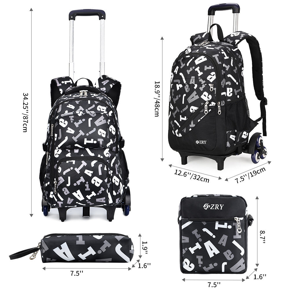 🎒 Practical 3-in-1 Trolley Backpack Set: Apart from the useful School Bag, there also comes with a cross-body bag and a pen bag, which are provided for student's convenience. Children can use the cross-body bag when going for daily activities. They can use the 3 bags for different occasions