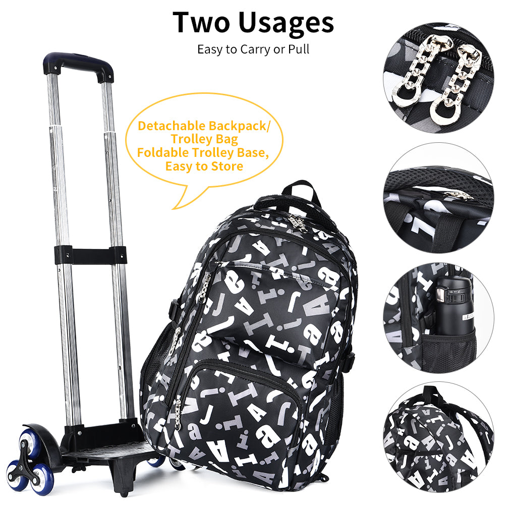 🎒 Ergonomic Design: When used as a backpack, the S-shaped sponge shoulder straps can effectively reduce children's burden, so as to protect their spine and ensure healthy growth. This Wheeled Backpack is suitable for primary school students, junior and senior high school students, perfect for school, travel, walking or other activities