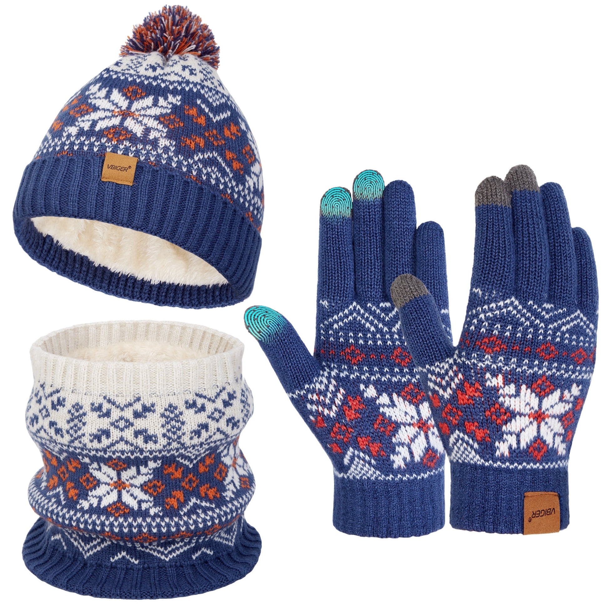 Kids Scarf Gloves Hat Set - Winter Knit Beanie Cap Neck Warmer Touch Screen Mitten Boy Girl 5-10 Year