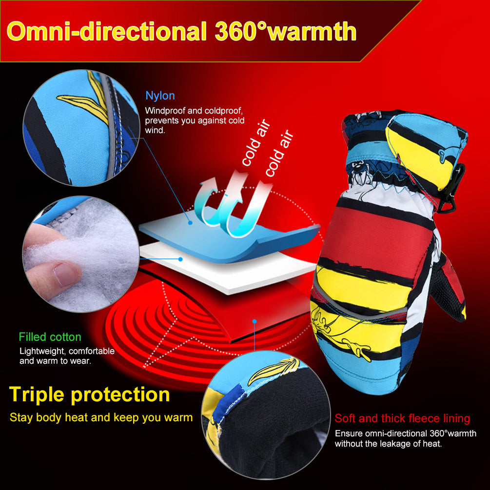 Warm Skiing Skating Gloves Waterproof Full Finger Mittens With Fleece Lining in Winter and Autumn, Suitable for Kids between 2-7 Years Old