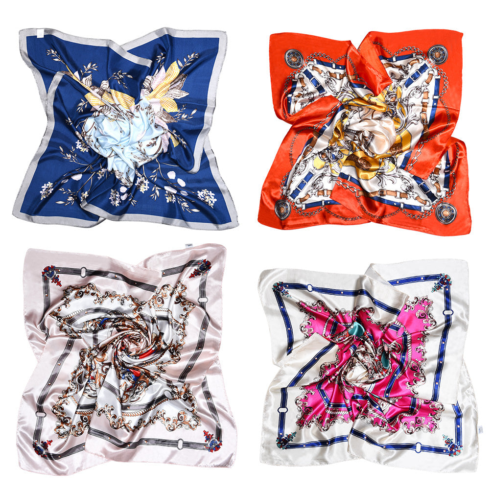 Women's Large Satin Square Silk Feeling Hair Scarf 35.4 x 35.4 inches, 4Pcs