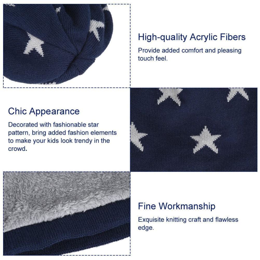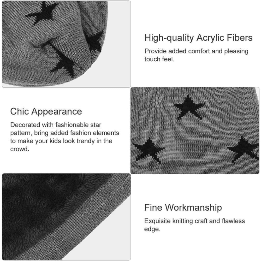 The perfect combination of knitted hat and infinity scarf offers all-round protection to prevent your kids' head and neck against cold injury in chilly days. In addition, both of the solid color design and star pattern are helpful to bring added fashion elements for your lovely kids.